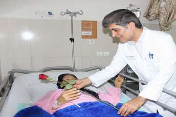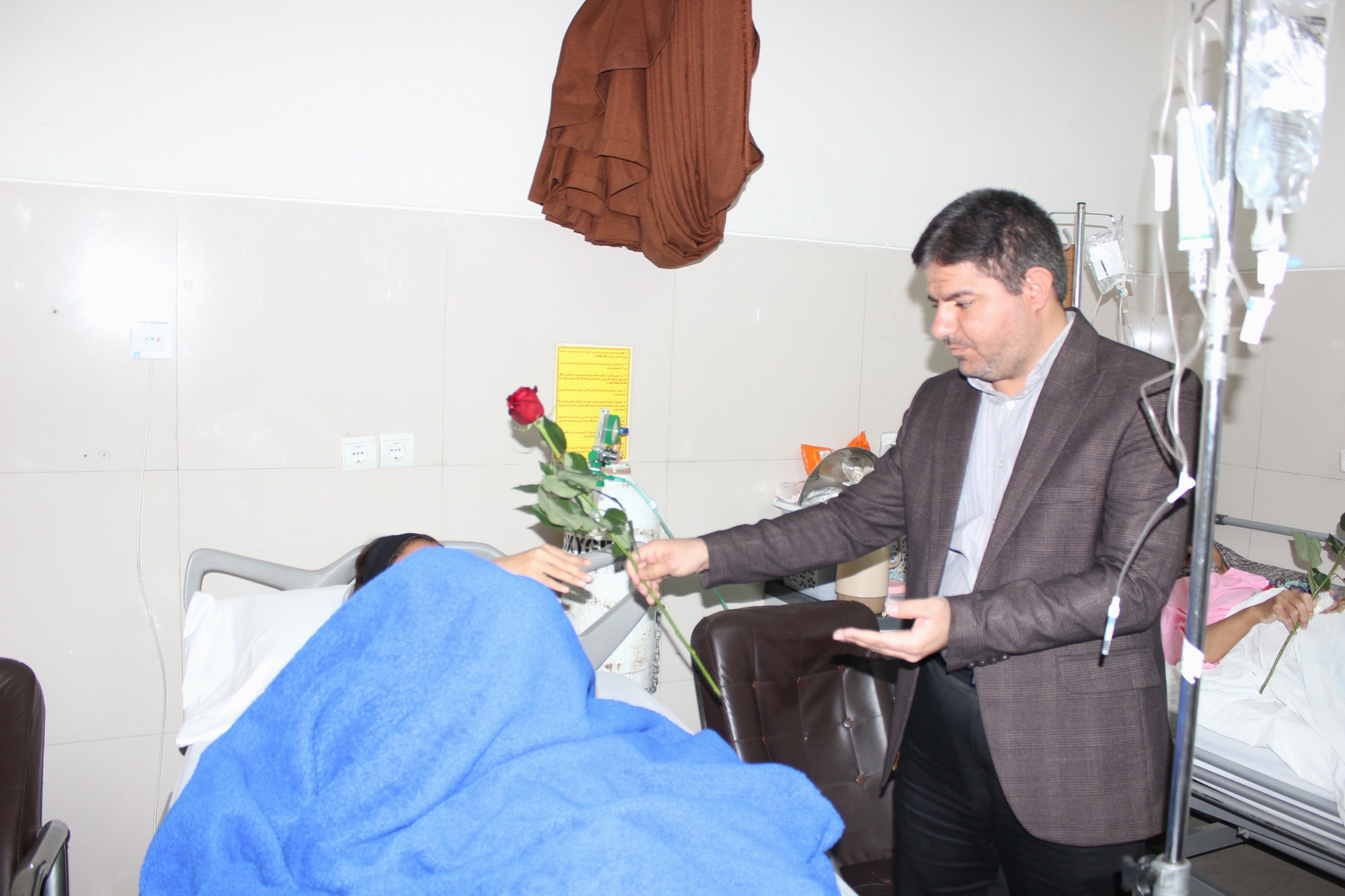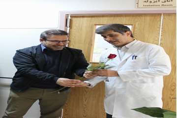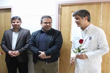 سپس، معاون درمان و هیئت همراه با حضور در کنار تخت بیماران بستری، با اهدای شاخه گل، ضمن جویا شدن وضعیت جسمانی و روحی آنان، برایشان آرزوی بهبودی و سلامتی کامل کردند.